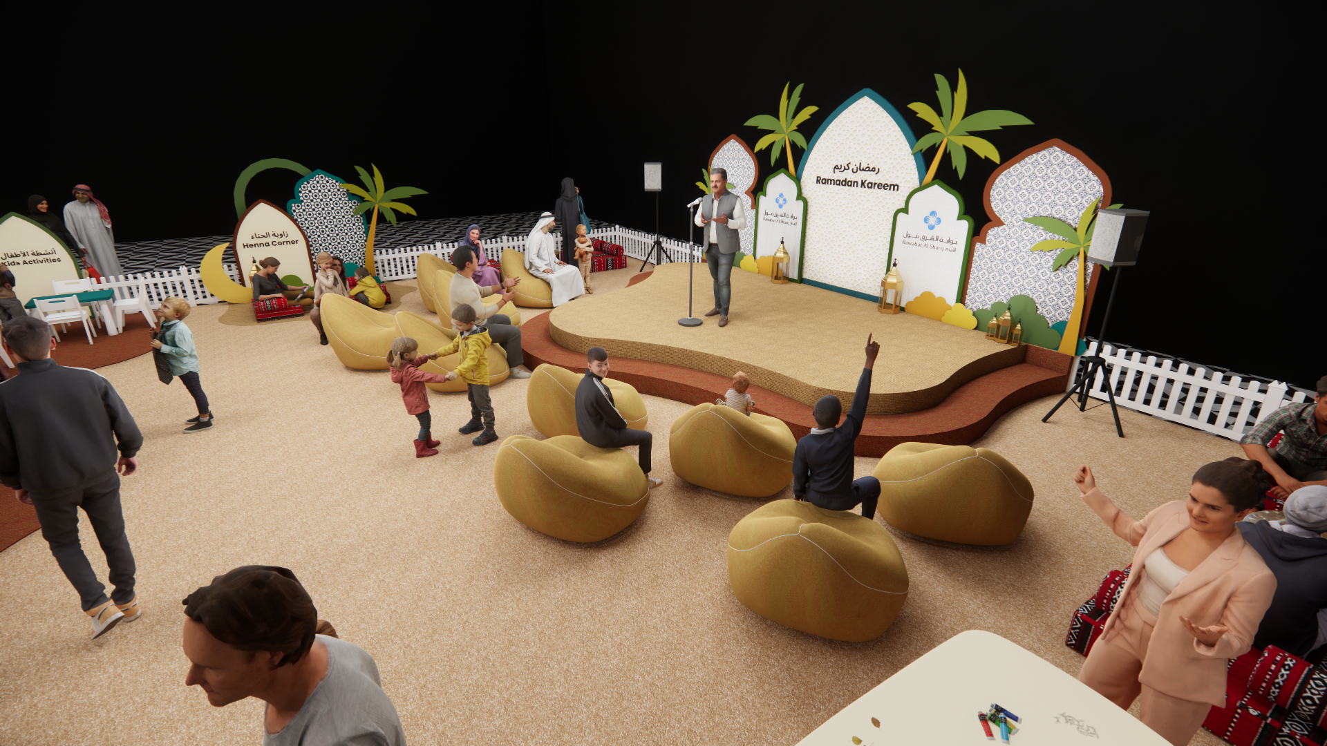 We bring your vision to life through cutting-edge 3D design, world-class artists, and expert on-ground talent. Whether it’s a corporate training or an intimate Sahoor gathering, we blend creativity with precision to create unforgettable moments.